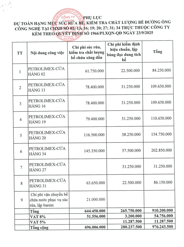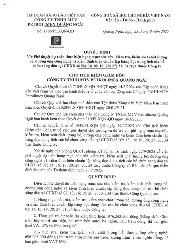 Nguồn: Phòng QLKTPetrolimex Quảng Ngãi