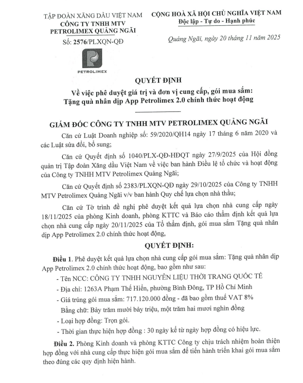CÔNG TY TNHH MTV PETROLIMEX QUẢNG NGÃI PETROLIMEX QUANG NGAI