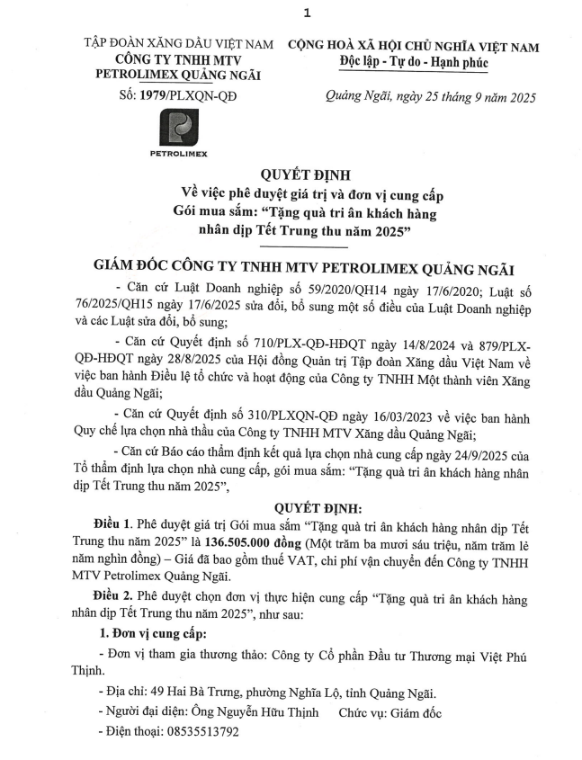 CÔNG TY TNHH MTV PETROLIMEX QUẢNG NGÃI PETROLIMEX QUANG NGAI