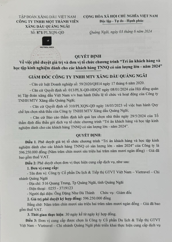CÔNG TY TNHH MTV PETROLIMEX QUẢNG NGÃI PETROLIMEX QUANG NGAI