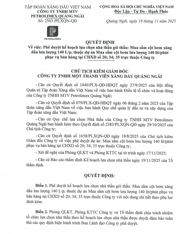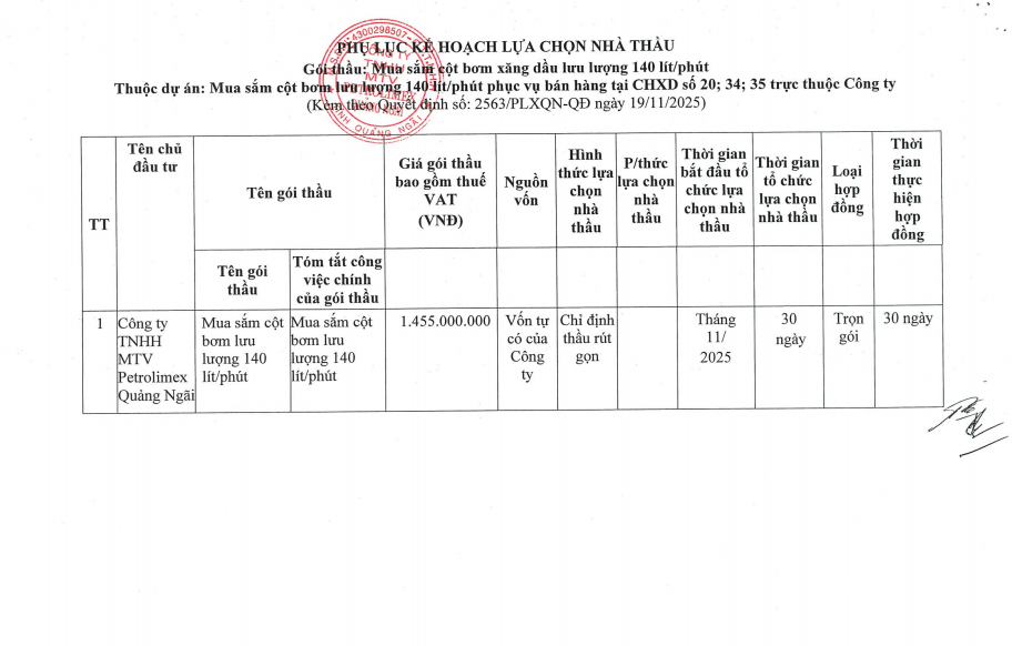 Nguồn: Phòng QLKTPetrolimex Quảng Ngãi