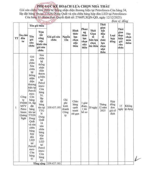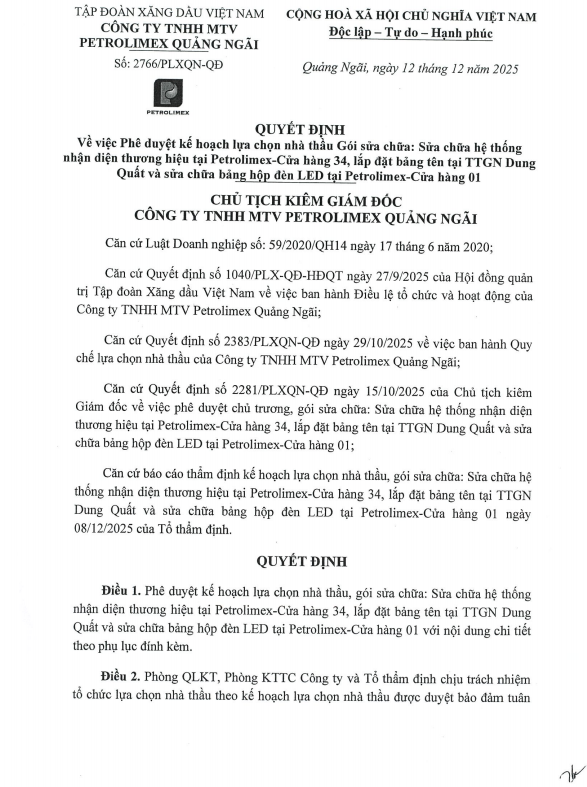 Nguồn: Phòng QLKTPetrolimex Quảng Ngãi