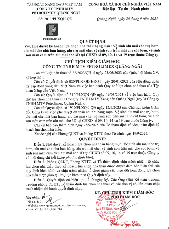 Nguồn: Phòng QLKTPetrolimex Quảng Ngãi