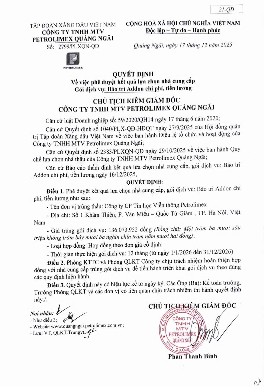 CÔNG TY TNHH MTV PETROLIMEX QUẢNG NGÃI PETROLIMEX QUANG NGAI