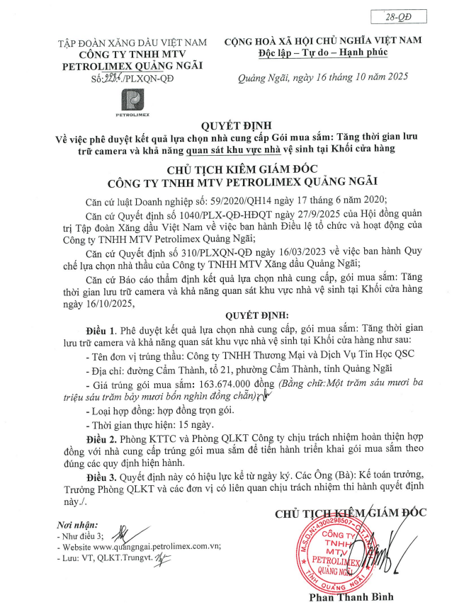 Nguồn: Phòng QLKTPetrolimex Quảng Ngãi