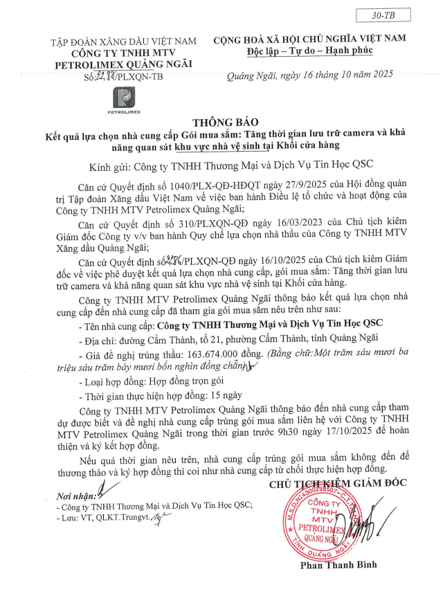 Nguồn: Phòng QLKTPetrolimex Quảng Ngãi