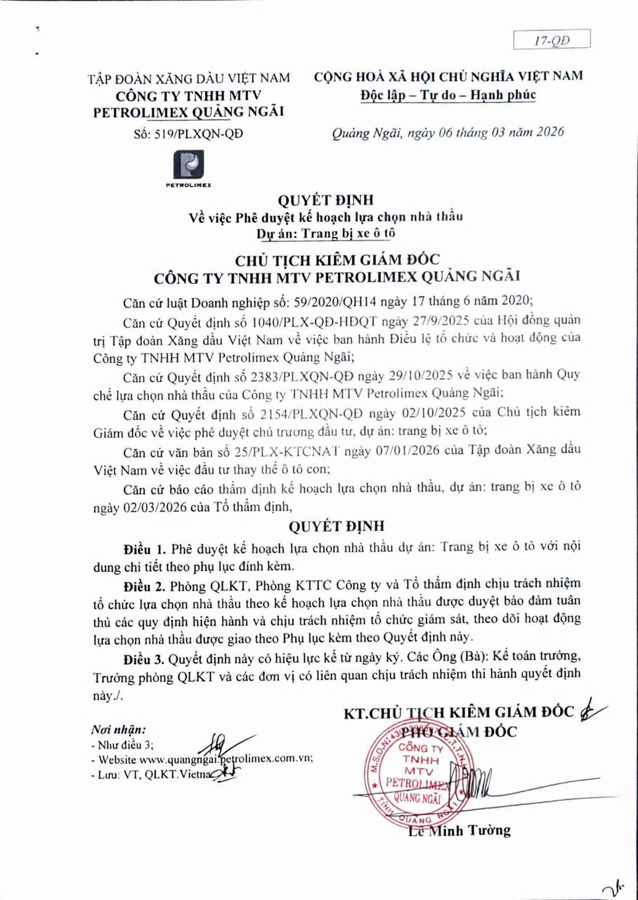 Nguồn: Phòng QLKTPetrolimex Quảng Ngãi