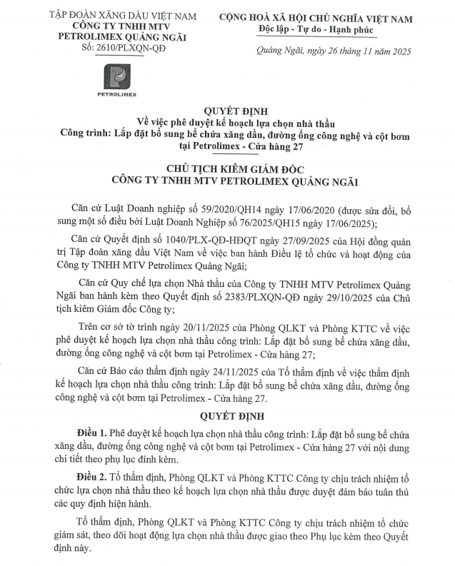Nguồn: Phòng QLKTPetrolimex Quảng Ngãi