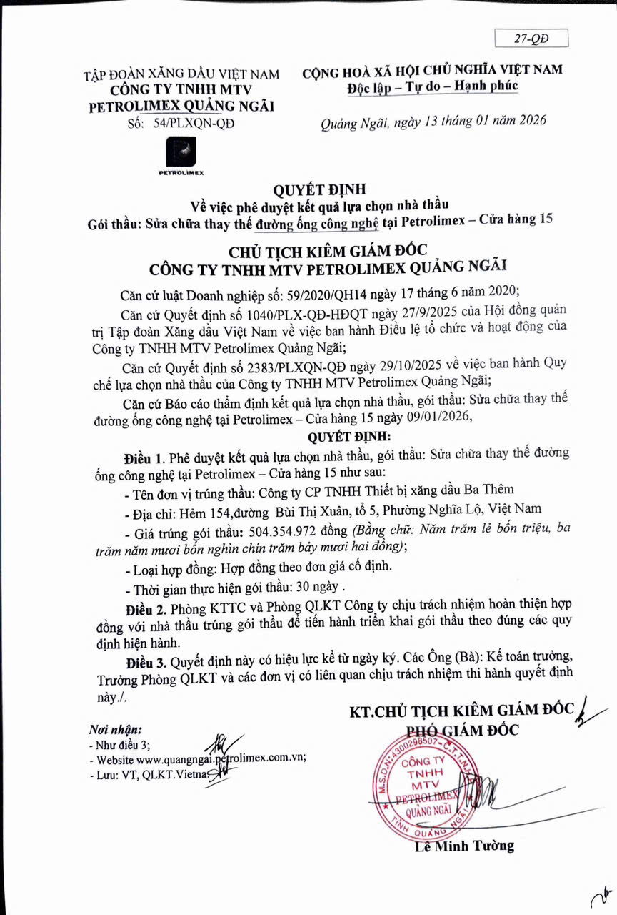 Nguồn: Phòng QLKTPetrolimex Quảng Ngãi